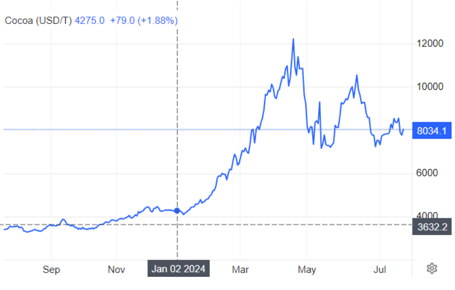The COVID-19 pandemic disrupted global supply chains and resulted to significant increases in chocolate prices. Lockdowns and restrictions affected cacao production, labour shortages emerged, and logistical challenges hampered the distribution of raw materials. Additionally, increased demand for comfort foods, including chocolate, put pressure on supply.