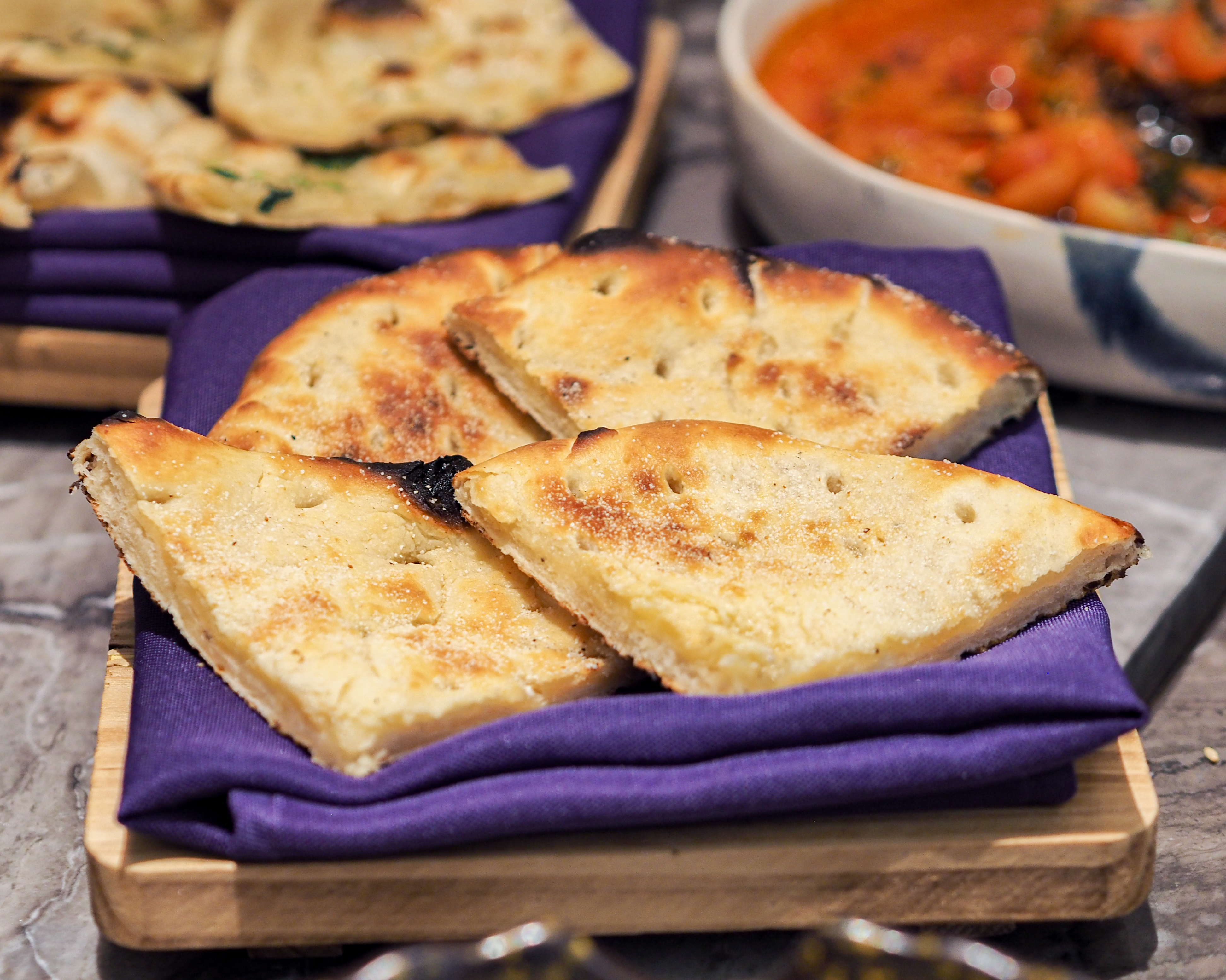 ABOVE Variety of bread: Khameer, Bakarkhani & Green Butter Herb Naan