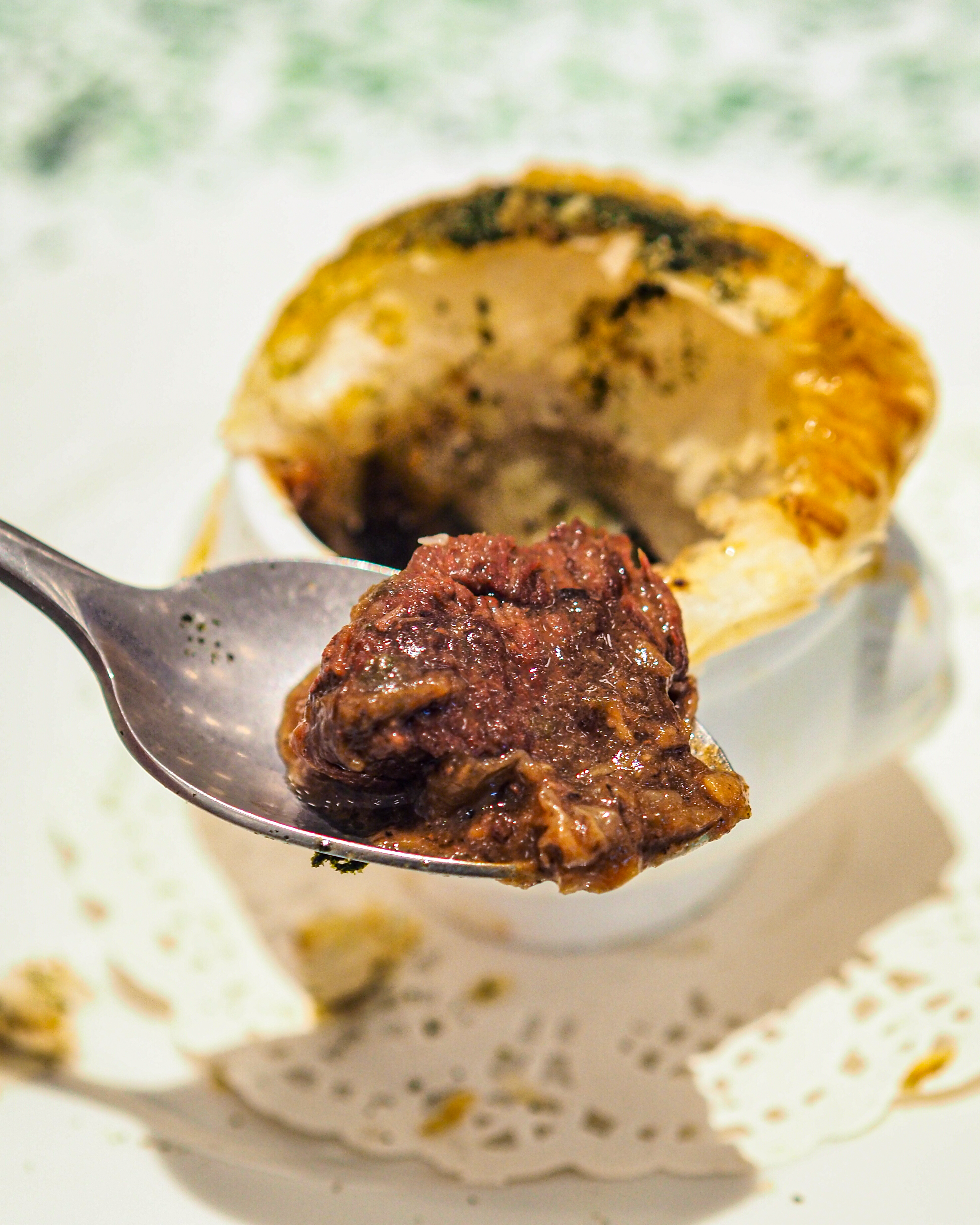 Taking intercontinental cues, the next course was a beef pot pie with chunks of fork-tender beef that still retain some toothsomeness. The pastry was rich, buttery and flakey — perfect accompaniment to the slow-cooked stew within, which had Asian influences and notes of umami seaweed. Now there’s a creative spot! Try infusing some kombu into your beef stews.
