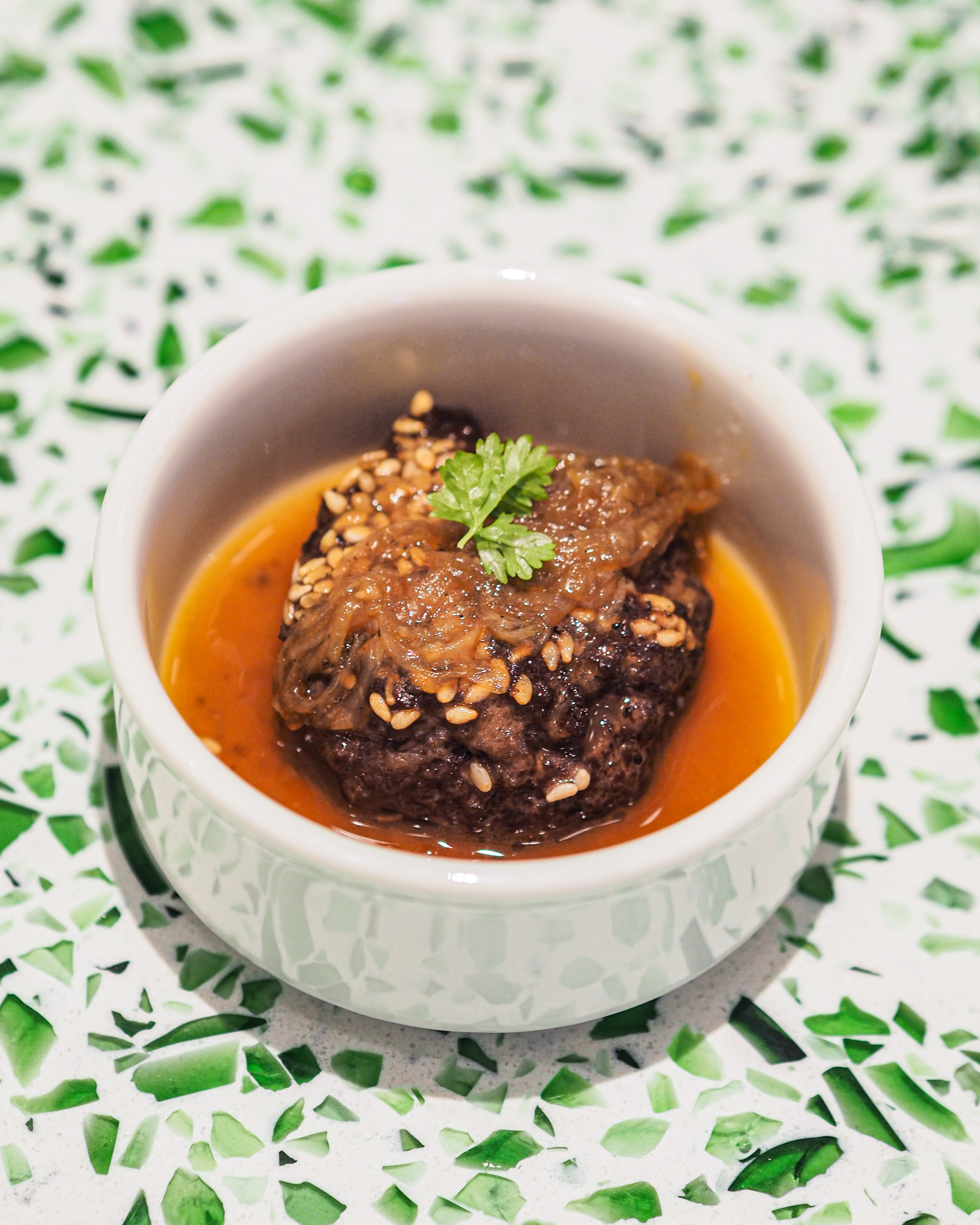 We had the pleasure of being invited to an specially-curated one-day-only lunch event hosted by Culina and Chef Olivia, the brains behind the international introduction of MiGyeongSan Hanwoo. The tasting menu at Culina Bistro was a five-course lunch affair exclusive to the media event, each course featuring a cut of MiGyeongSan Hanwoo taken straight from the butchery section at Culina Market. To kick off the lunch event, two off-menu starters in the form of beef skewers and seared beef patties swimming in dashi, both of which were deeply savoury and opened up the palate for the meal to come.
