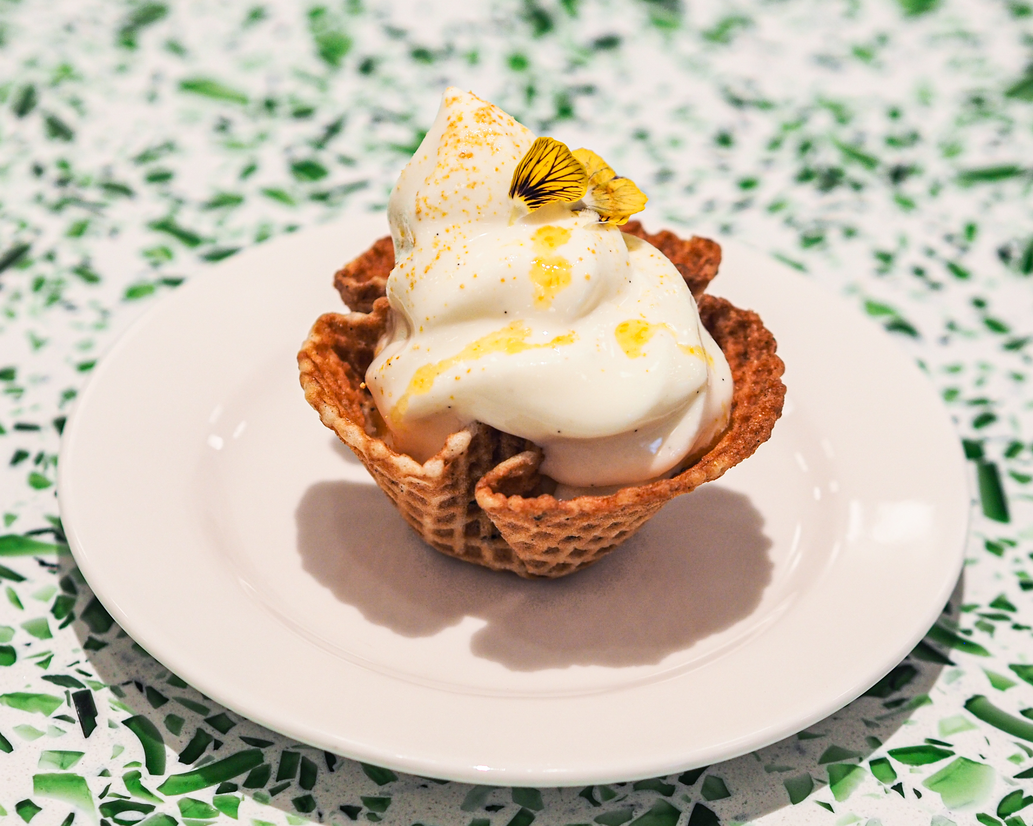 The vanilla bean and yuzu soft serve dessert was an unexpected hit. Served in an abstract-shaped waffle vessel, the flavours of the ice cream were nuanced yet balanced. The waffle was also very buttery and fragrant. I enjoyed this very much; ending the meal on a high note.