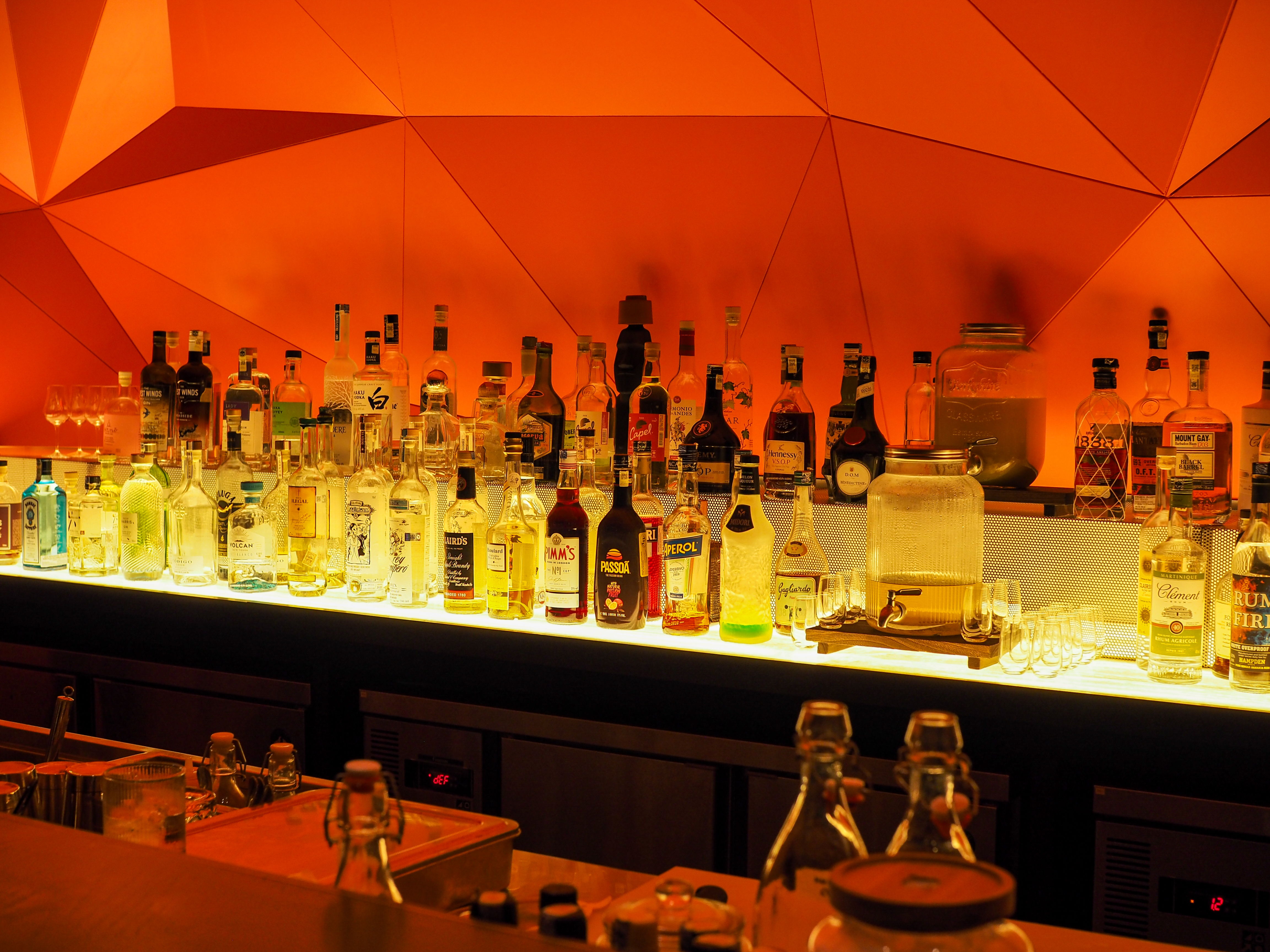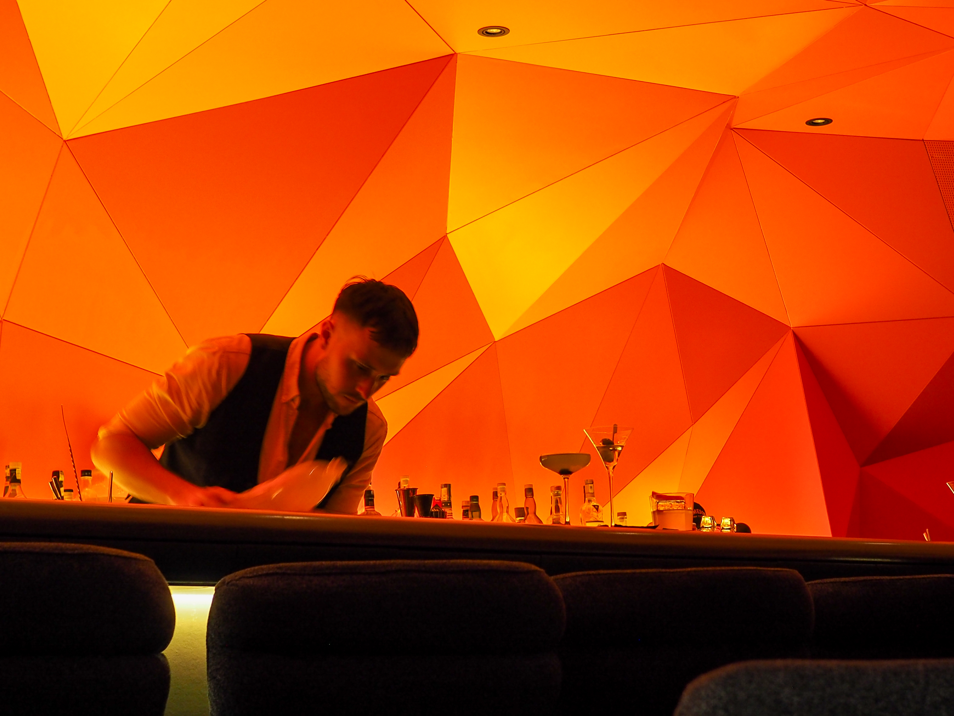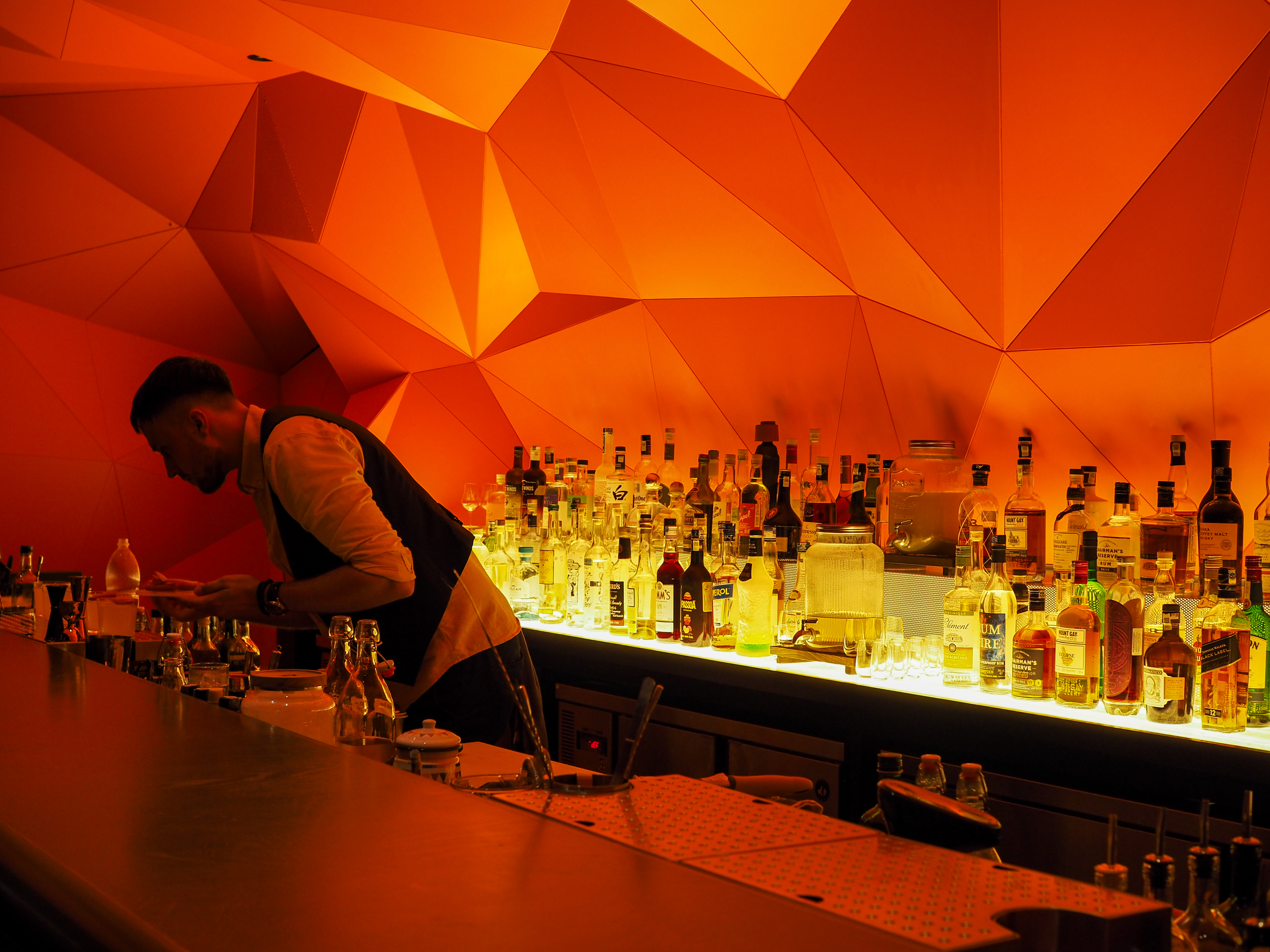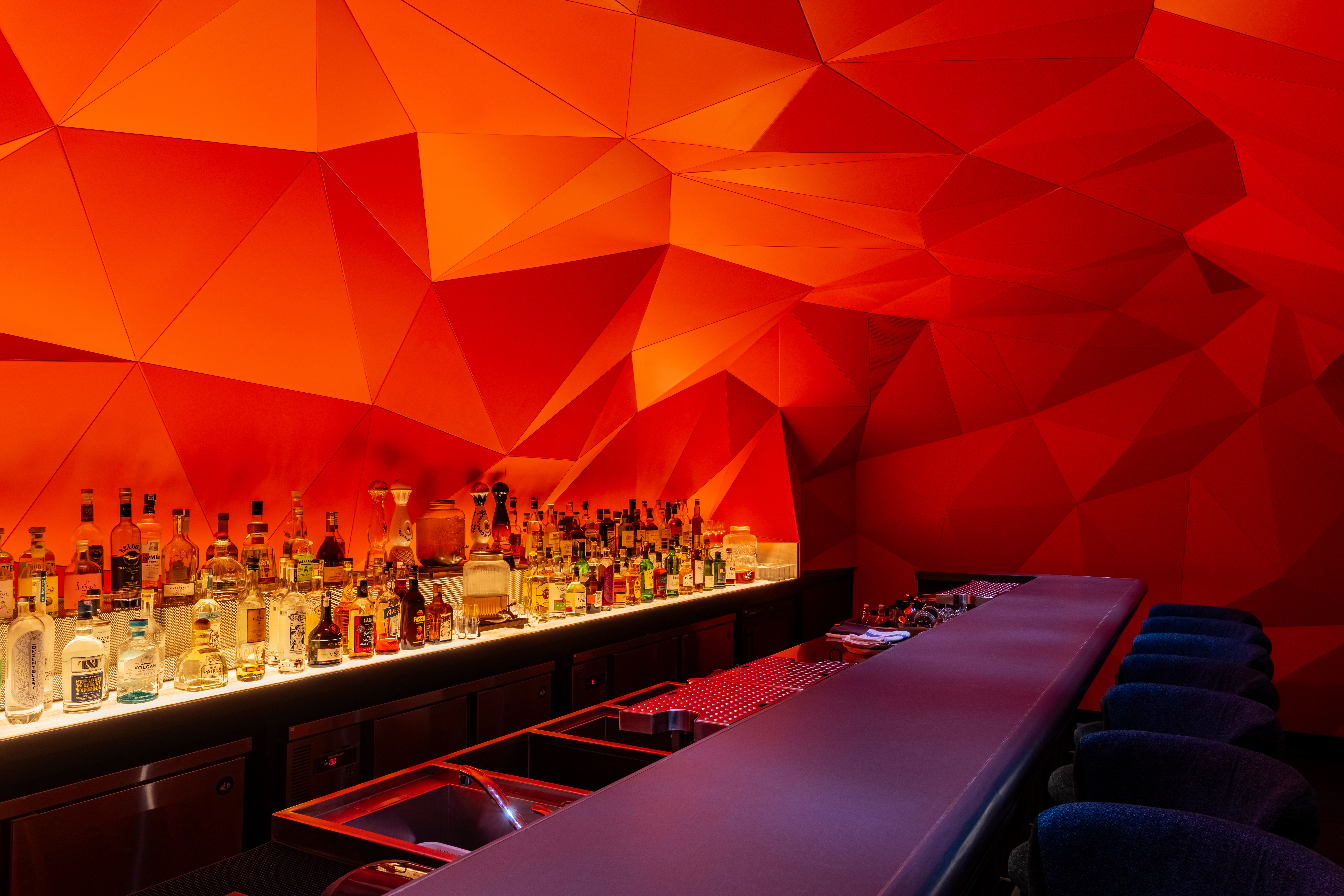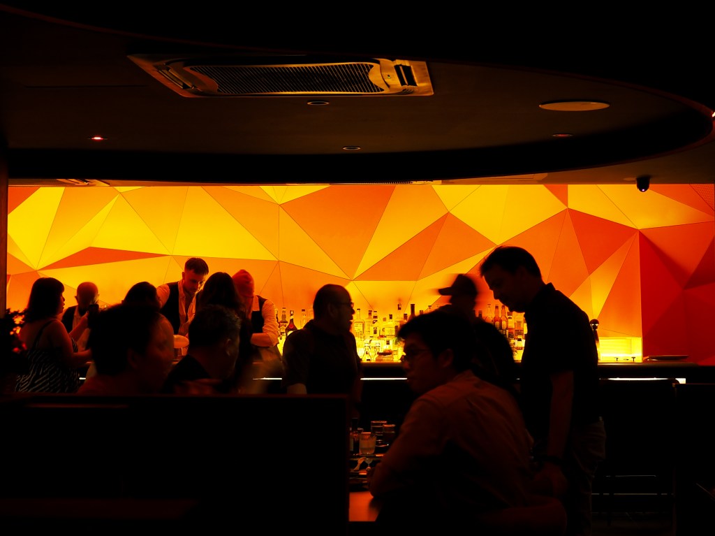 The latest concoction of Lolita Goh and Joshua Ivanovic, masterminds behind the popular rum bar JungleBird, Humboldt is heavily inspired by Ivanovic’s surfing adventures in South America and the lift-giving Humboldt current that runs north along the coasts of Peru and Chile. The dramatic, bright orange polygonal backdrop that envelops bar-seated guests pays homage to the arid desertscapes of the Sechura, Nazca and Atacama.