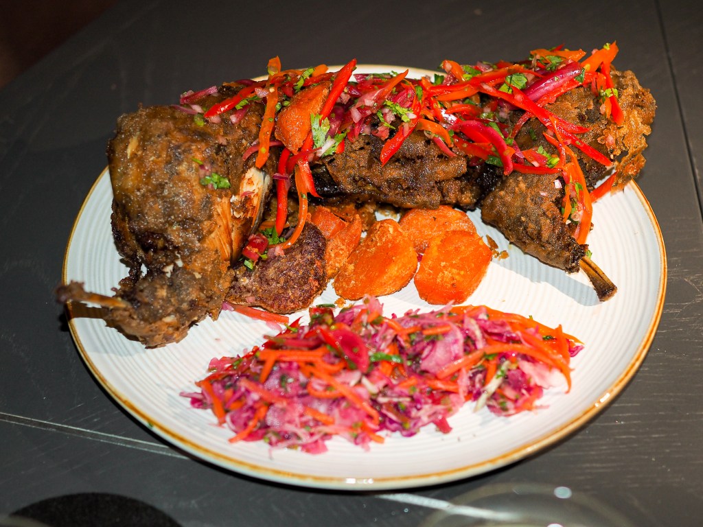 Someone said the rabbit tastes like crab, and another said chicken. To me it had the texture of pulled pork, and the flavour was somewhere between a chicken, turkey and lobster of all things! I enjoyed the root vegetables on the side with its paper-thin crust and fluffy interior, but the coleslaw-looking salad was not my cup of tea.