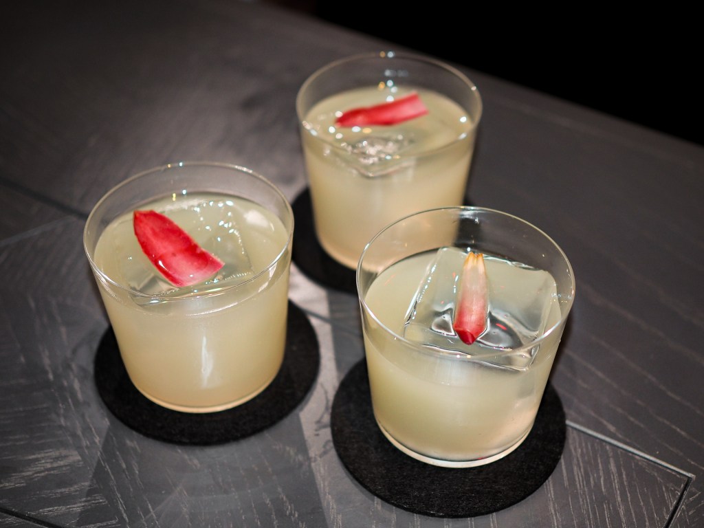 The decisively designed space features cosy booth, communal tables for gatherings, and a long counter where you get front-row seats to the bar show. A curvy light fixture nicknamed “The Current” runs the length of the bar ties the 65-seater space together. For a more intimate setting, a private room that fits eight sits discreetly behind a hidden door.