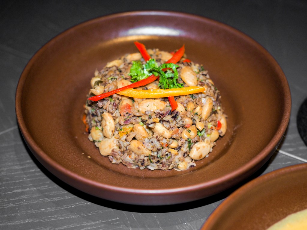 Like Asian countries, South Americans have historically incorporated rice and grain as staple foods in their cuisine. Arroz con Menestra sees heirloom rice of different shapes and sizes stewed together with plump lima beans then tossed together with fresh vegetables like onions, peppers and tender herbs. Enjoyable, this hearty plate fares nicely as a side or accompaniment to the other protein entrées.