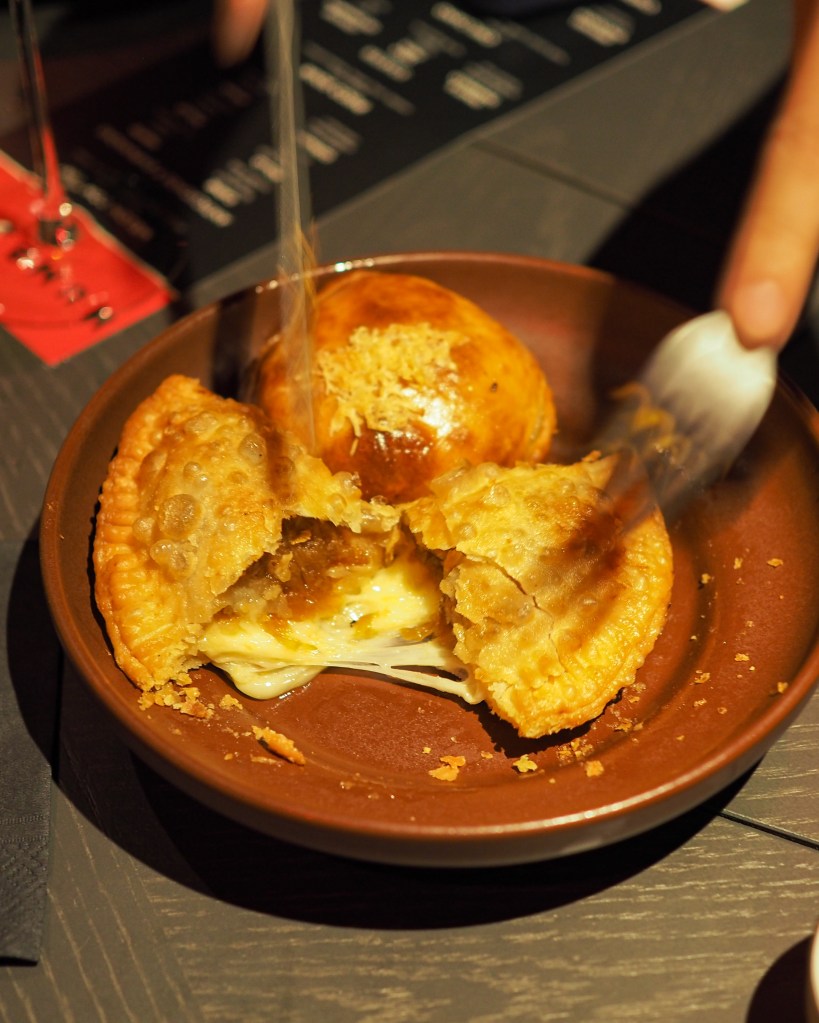 - Rounding out the trio is Viento, the Ecuadorian representative, and my favourite of the three featuring cheese, caramelised onions paired with aji de tomate sauce. The cheese stretches as far as the kitchen’s vision and the onions lend a nutty sweetness to the rich cheese.