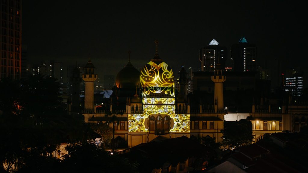 - Immersive light and sound display on the majestic Masjid Sultan façade.