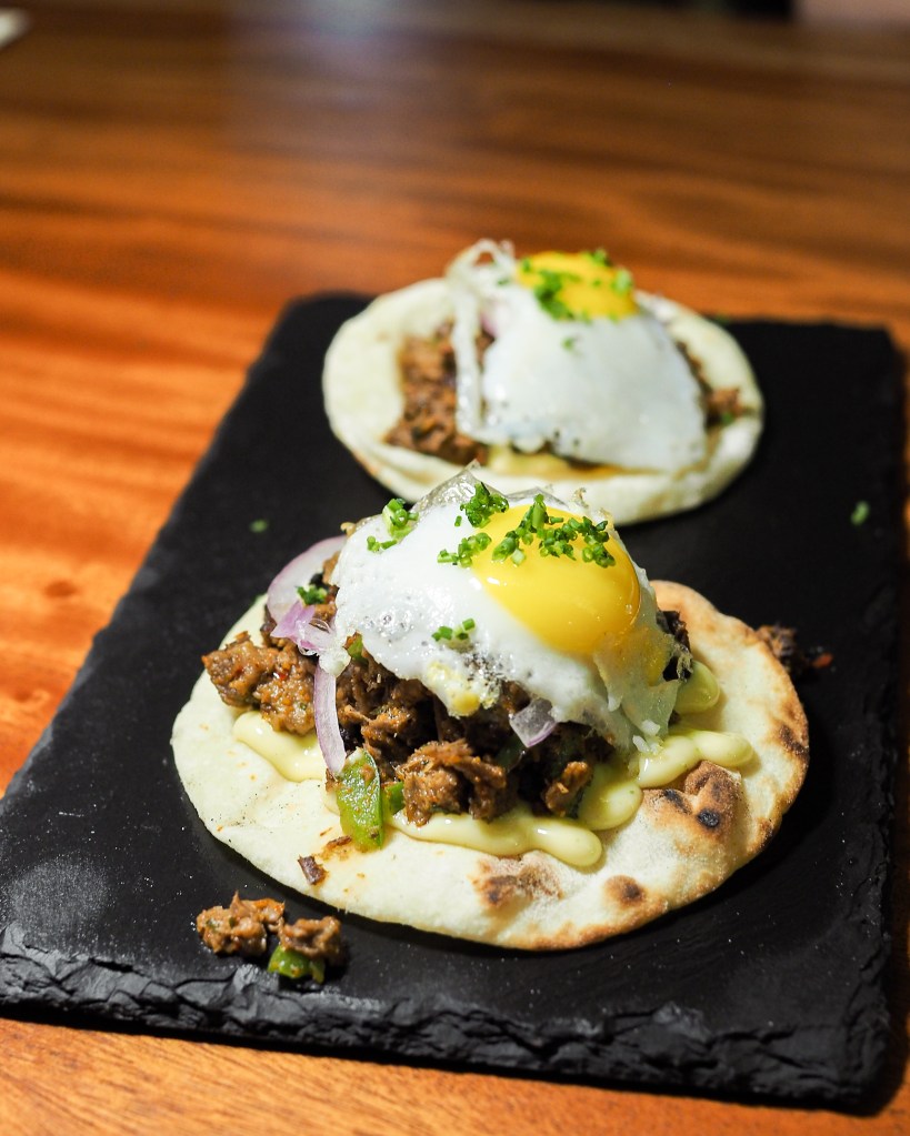 Cocooning the fillings and eating the flatbread like a taco can be quite the messy ordeal, with beef and quail egg yolk trickling out the ends — but it’s exactly that moment I felt the intimacy of this dish.