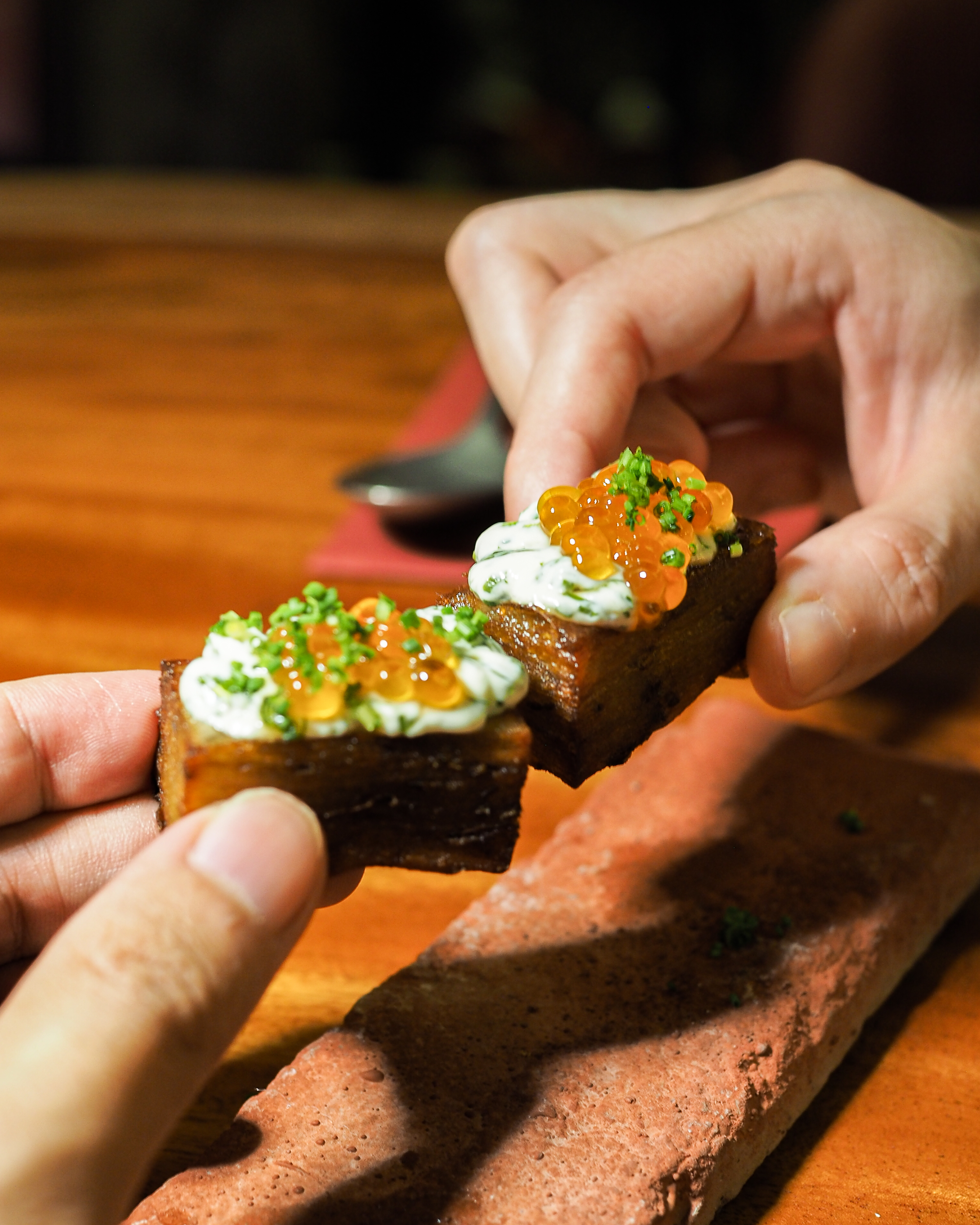 An unmistakable standout of the evening were the Chicken Wings with Pad Kra Pao & Fermented Hot Sauce. The wingettes were carefully deboned then stuffed with a Thai spice-infused Pad Kra Pao minced chicken filling and grilled to a crisp golden hue. These were paired with a house-fermented hot sauce (that I happily took home a little jar of) that had the right balance of heat, tang and funk.