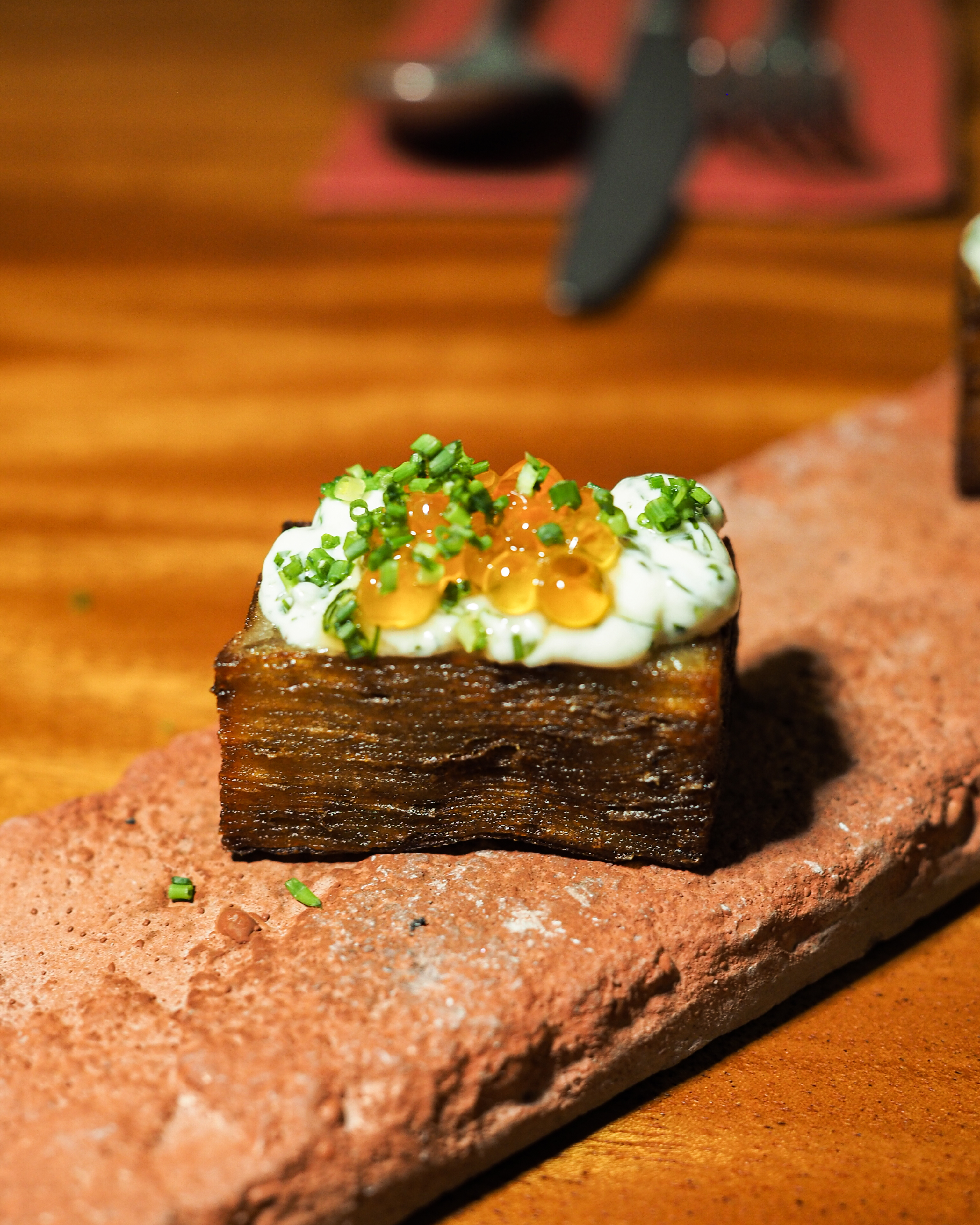 Our journey at CHARR begins with the Pommes Anna, served with herb crema & house-smoked trout roe. A luxurious rendition of the French classic, featuring buttery, crisped potato layers complemented by nutty brown butter, creamy and slightly tangy herb-infused crema, and the briny bursts of roe. Definitely a must order for potato lovers.