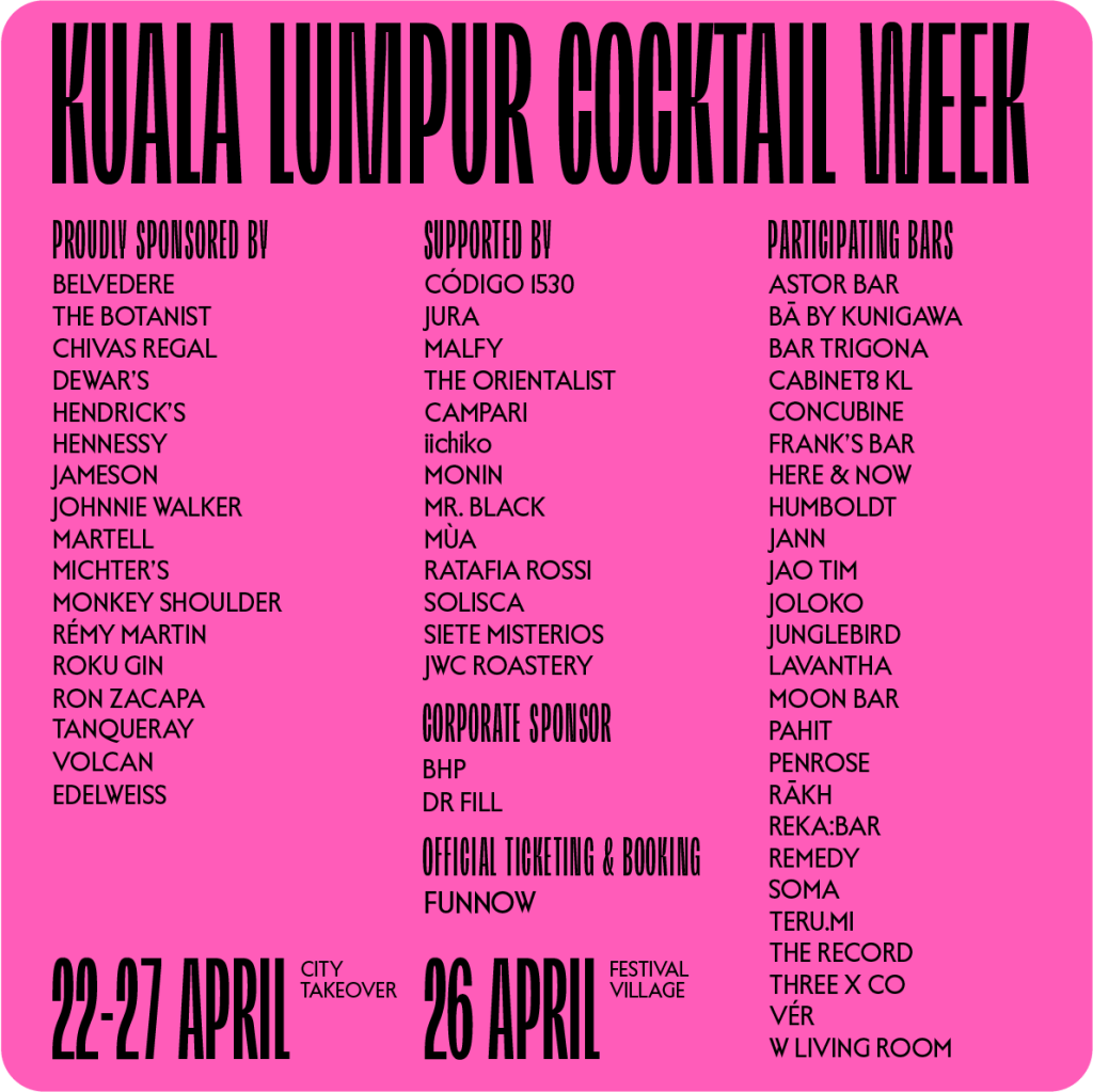 For full booking details and reservations, visit @klcwofficial or contact individual venues directly.
