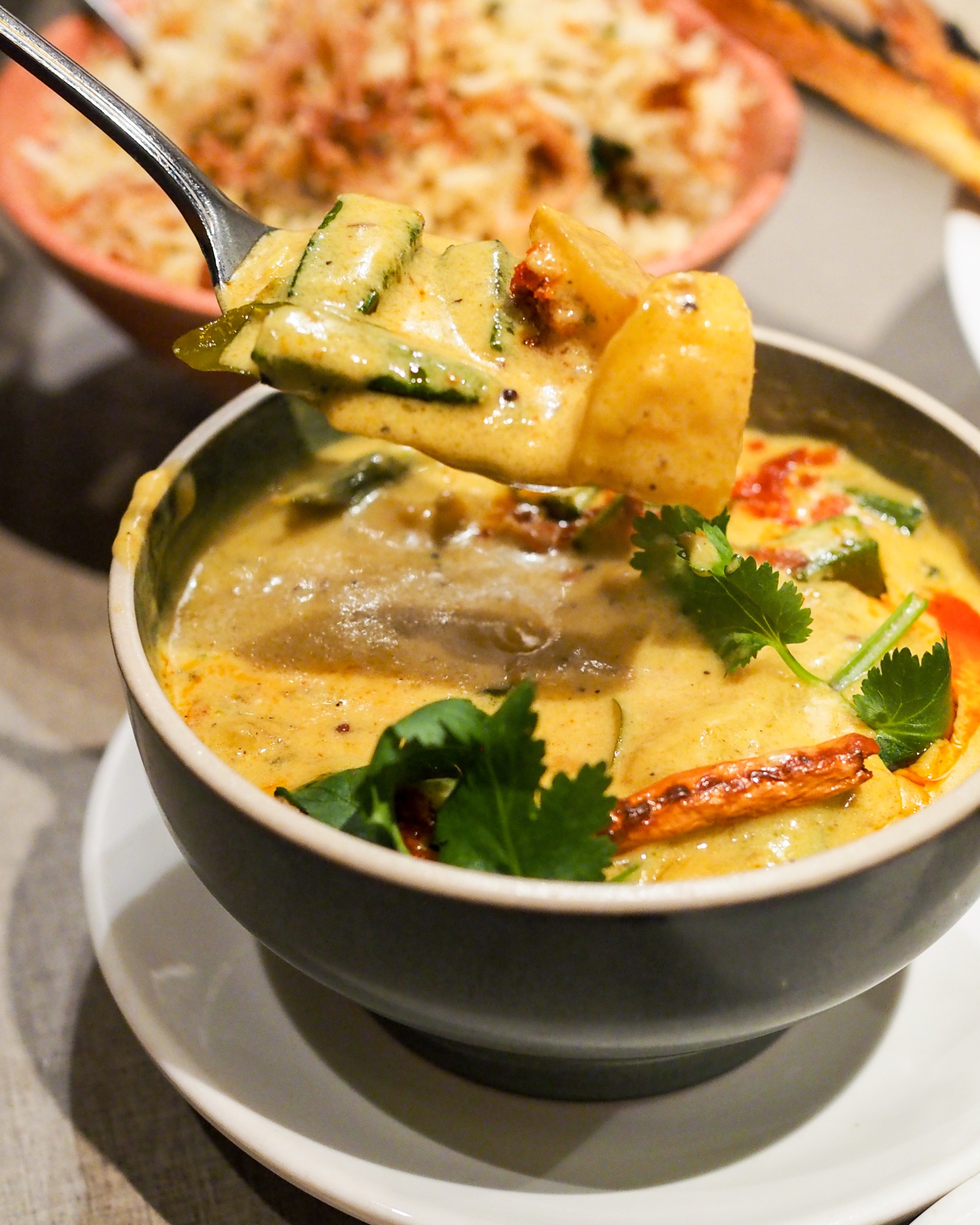 Where most curries command, this one soothed—a quiet bowl of sunset-yellow gravy that tasted like summer winding down: leaning mild, mellow and sweet. The gravy is thick but not cloying, and seasoned light enough to be eaten by the spoonful.