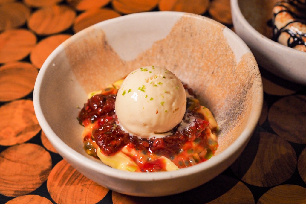 Kaffir lime gelato with passionfruit and tamarillo