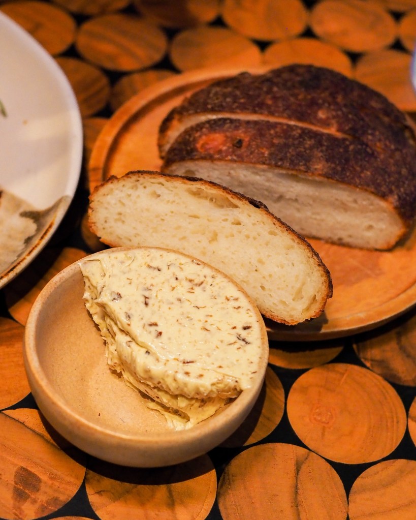 AIR’s signature Fermented Cassava Bread had quite a unique texture. Served warm, its thin crisp crust draws attention to the denser, bouncy interior. Texturally more similar to a mochi bread than the usual open-crumbed sourdough loaves.