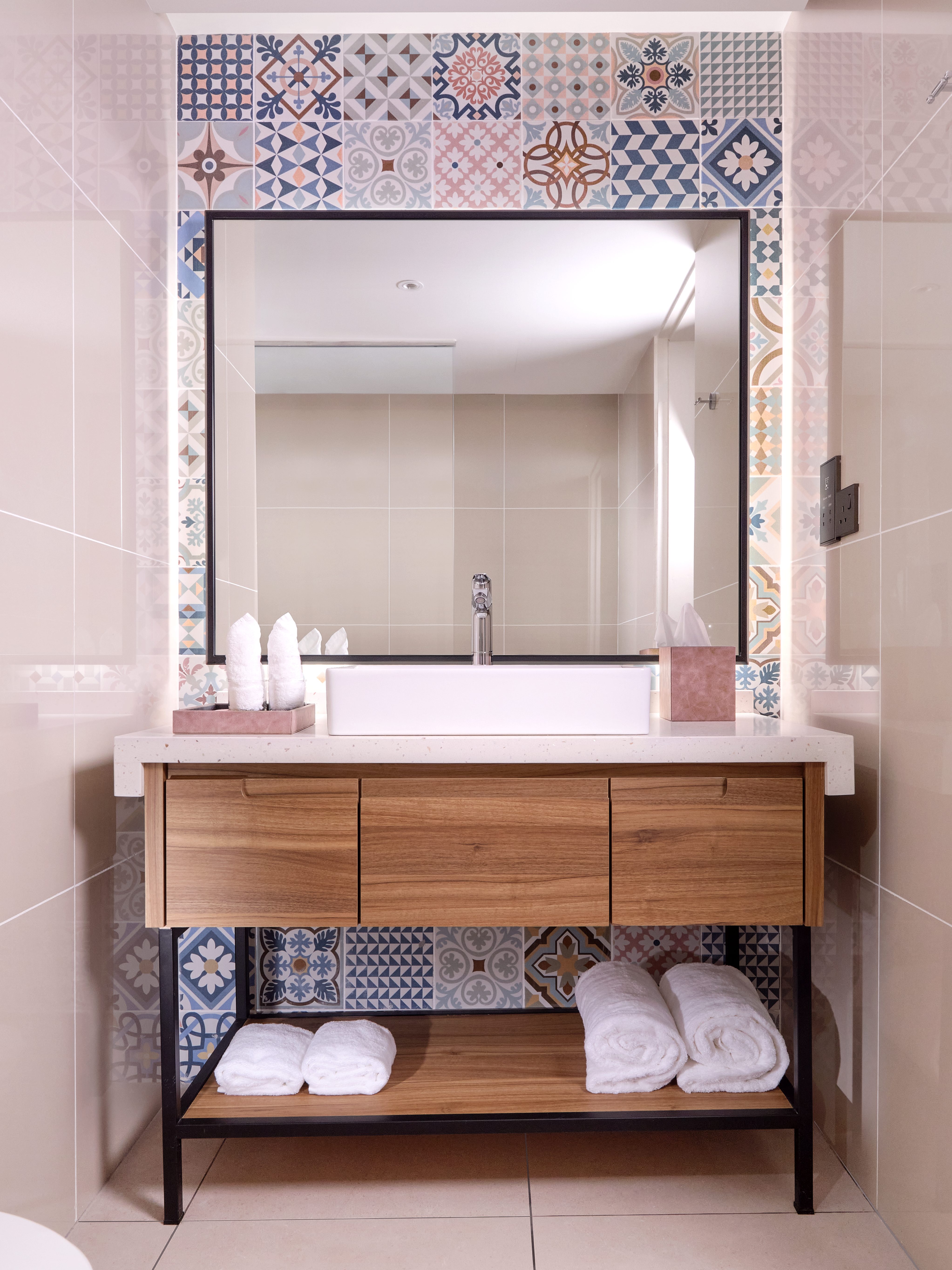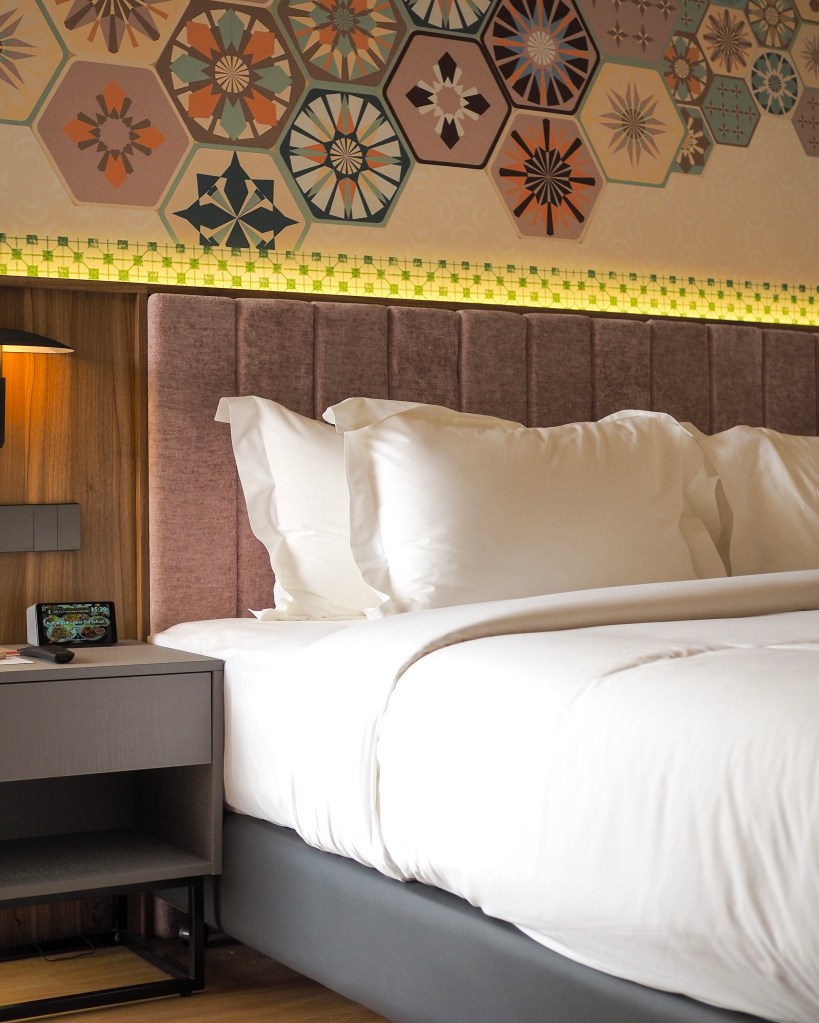 The space above the headboard is home to beautiful Peranakan tile-inspired artwork that drew me in from the first steps in.
