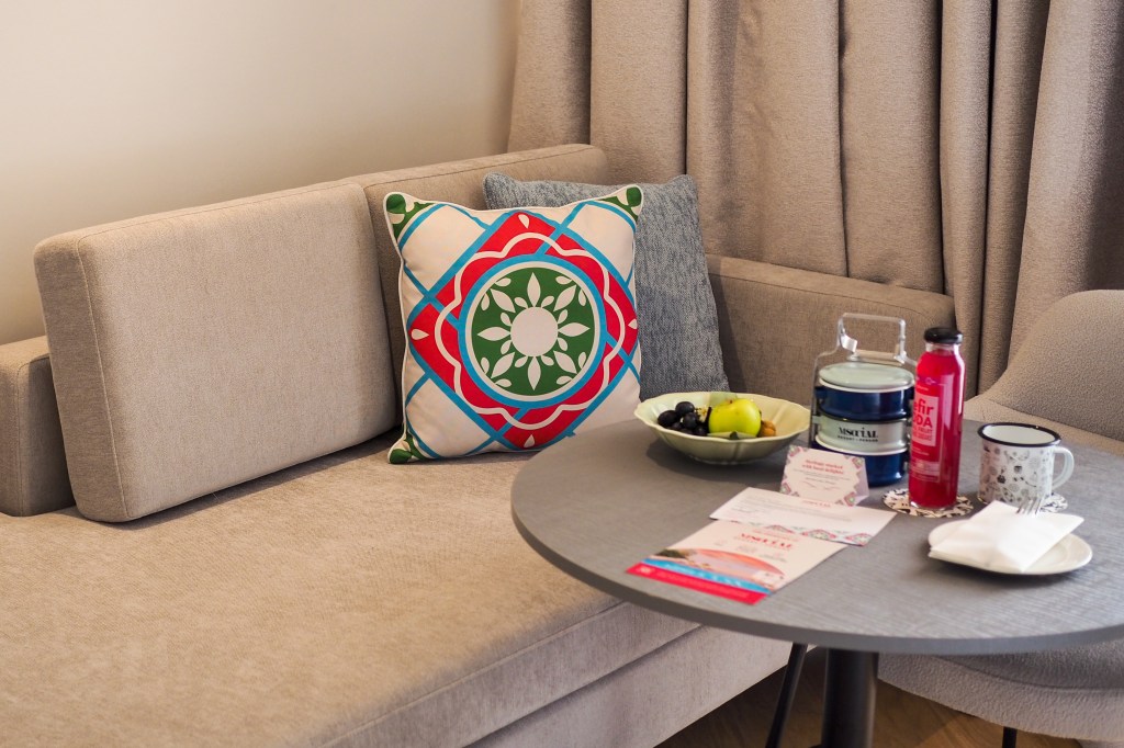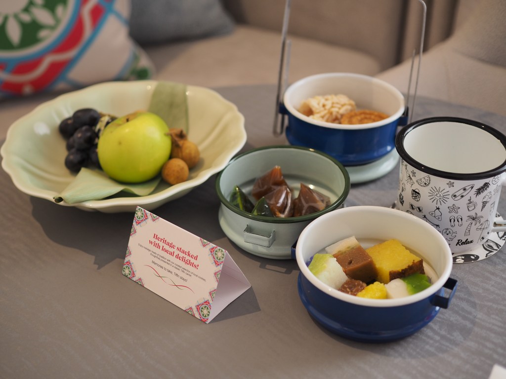 On the table were more welcome amenities that included a fruit bowl, a tiffin carrier filled with delectable kuehs and snacks, and a kefir soda for my enjoyment.