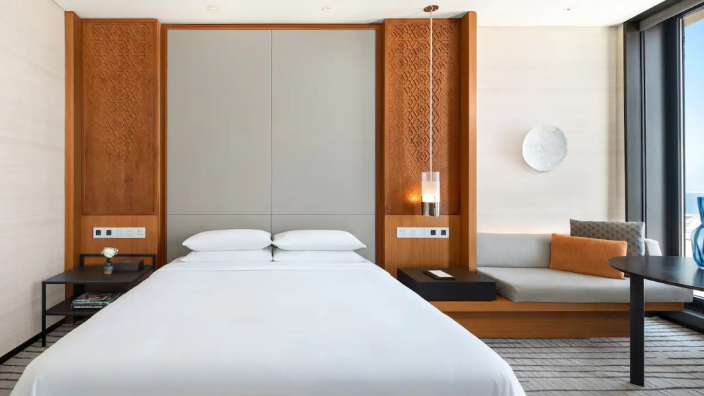 Located in the ultra-modern Msheireb Downtown district, Park Hyatt Doha delivers Arabian warmth with a modernist hand. The interiors are sculpted in soft sand tones, textured with Arabic patterns and contemporary artworks.