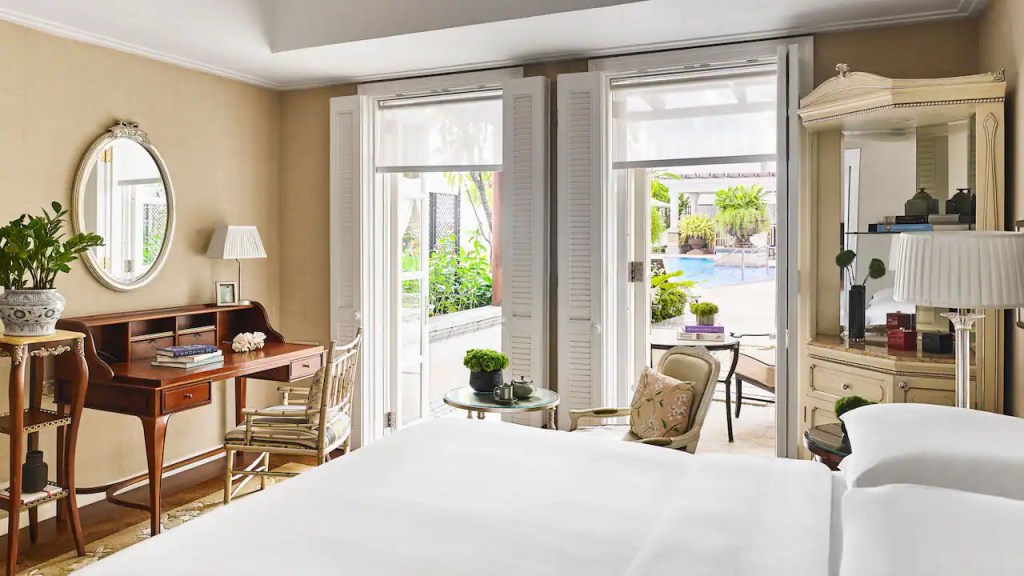 The 245 rooms and suites, often cited among the most refined in Ho Chi Minh City, are styled with classical restraint: soft neutrals, local artwork, period furnishings, and French doors that open to garden or city views.