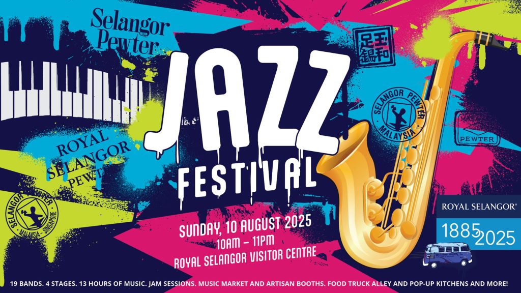 Held across four custom-built stages at the Royal Selangor Visitor Centre, this one-day festival features 19 live jazz acts in rotation, supported by a satellite programme of food trucks, artisan markets, film screenings, and open jam sessions. The event runs from noon into the night, offering full access to performances alongside tours of the pewter workshop and brand exhibitions.