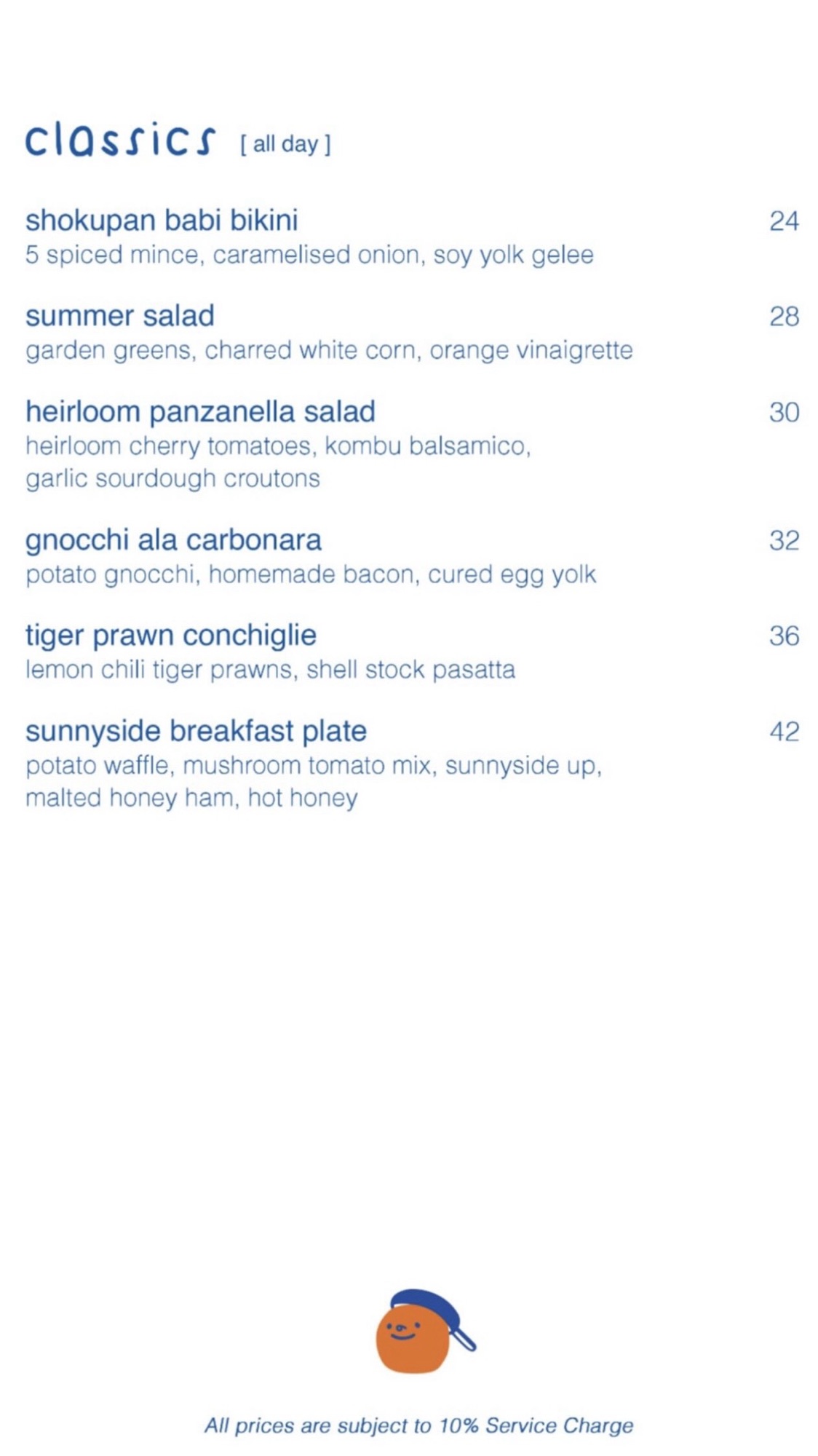 The cafe is located in a seaward-facing house, with private parking at the front. Its Northeast-oriented facade and lack of much ambient lighting plays heavily into its Sunnyside moniker, chancing on the morning sun’s glow. Unfortunately the overcast weather during our visit meant that most of the interior was cloaked with a moody dimness. If you chase natural light for food photos (like me) and OOTDs, you’d prefer to sit by the window or one of the outdoor tables.