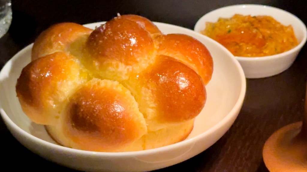 Before anything else, the bread course arrived. The brioche was warm, golden, fragrant, and pull-apart soft, releasing a gentle rise of buttery steam the moment I tore into it. I had heard mixed opinions about the bread service at Merdeka Grill and braced myself for a modest start, only to find myself pleasantly surprised. Bread service is complimentary here, and from what I have seen across social media and subsequent posts, the brioche appears to be the consistent offering rather than part of a rotating bread programme. The accompanying spiced dip, likely a muhammara, added warmth without overshadowing the bread’s natural richness. It was an unexpectedly strong beginning.