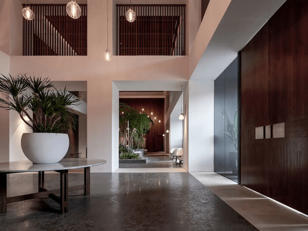 A thoughtfully zoned Studio King that appears deeper than its footprint, with an internal courtyard that becomes a multipurpose living nook. The cinematic height of The Great Room and a courtyard pool framed like a vertical postcard.