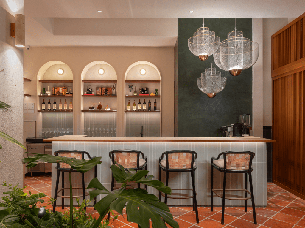 The Terrace Suites extend toward a rooftop garden overlooking the inner streets of George Town, while the Garden Suites introduce a different interpretation of privacy through enclosed courtyards framed by greenery. Across all categories, the interiors follow a consistent design language defined by clean lines, tactile materials, thoughtful lighting and custom furnishings created by local artisans.