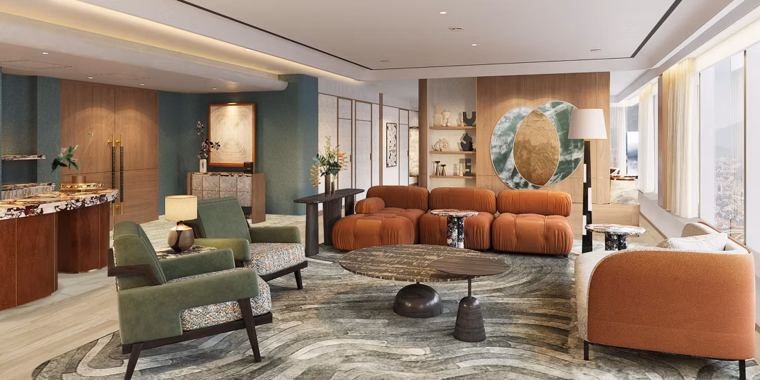 Designed by Hassell Studio, Kimpton Naluria Kuala Lumpur embraces a palette that leans warm and grounding. Earthy tones, natural stone, timber finishes, and layered greenery form a visual language that references Malaysia’s rainforests without tipping into pastiche. Sculptural lighting and terrazzo accents soften the spaces, creating an atmosphere that feels composed rather than performative.