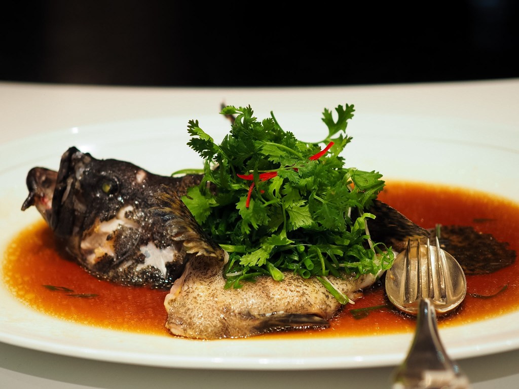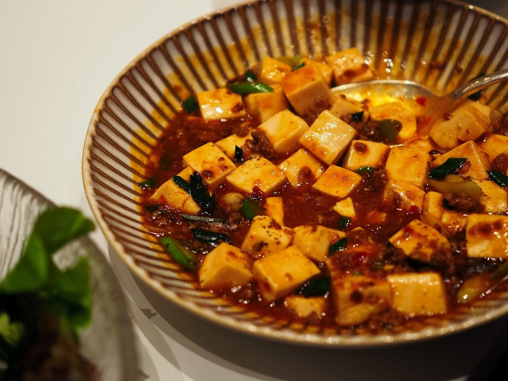 Cold appetisers were extremely moreish: marinated cherry tomatoes with sour plum and sweet vinegar that I repeatedly reached out for; fresh cucumber with premium soy sauce and a satisfying crunch; and most notably, chilled free-range chicken with chili and peanut sauce—the best kou shui ji I have had with spicy, numbing flavours that demanded a second bite.