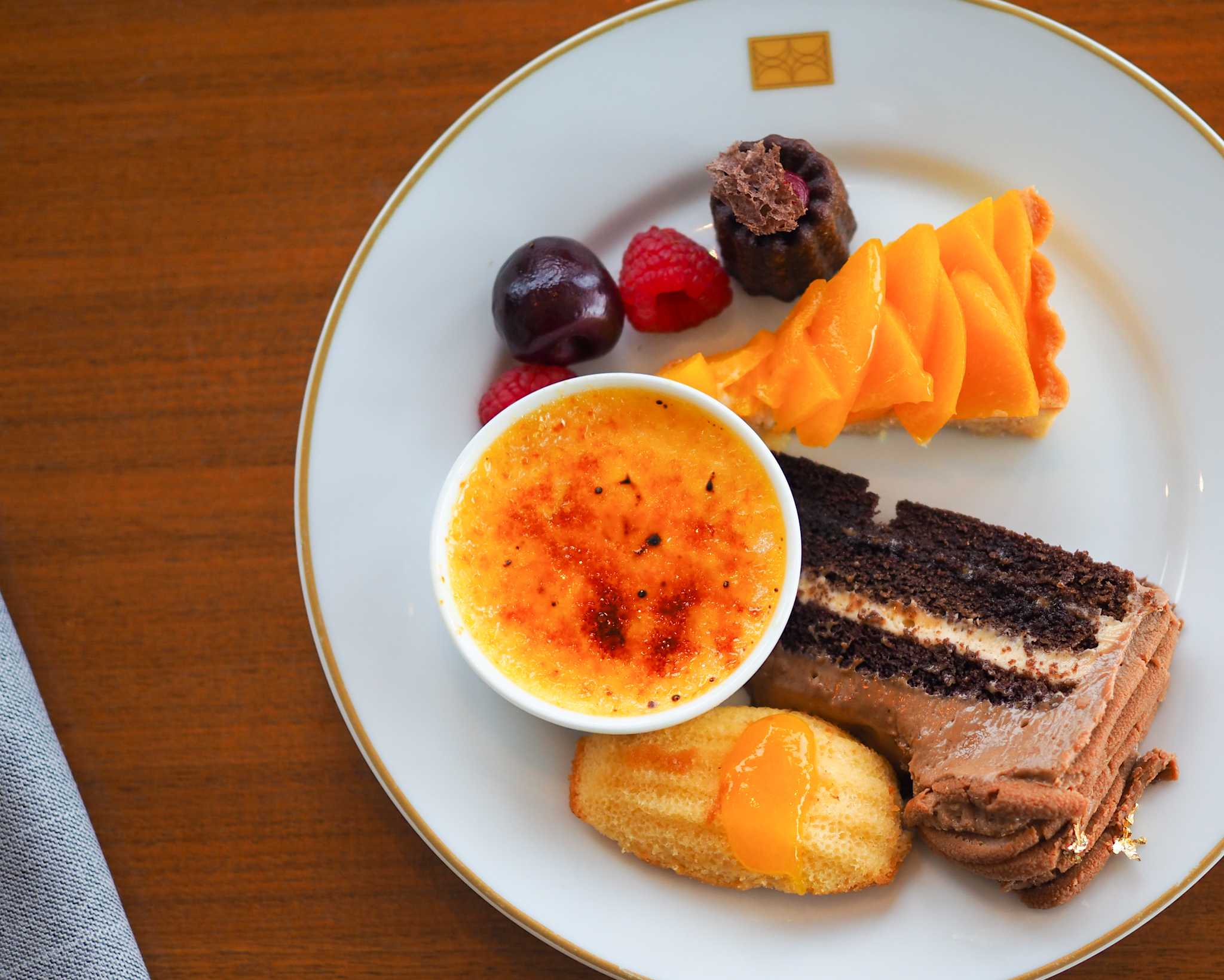 The live carvery answered with roast lamb, beef, and a porchetta of extraordinary execution—juicy, unctuous, crackling that shattered at the knife, mustard sauce its ideal companion. Executive Pastry Chef Sonara Sieng’s dessert spread impressed with chocolate hazelnut cake, mango tart, technically accomplished canelés, and a crème brûlée that impressed even the French.