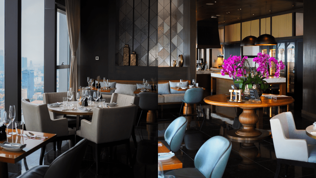 At the top of that conversation sits Rosewood Phnom Penh. Occupying the upper floors of the Vattanac Capital Tower—a gilded high-rise conceived in the form of a dragon watching over the confluence of the Tonle Sap and the Mekong—the hotel houses five distinct dining and bar venues open to guests and non-guests alike. Cuts is among the premier grill restaurants in the city. Zhan Liang is its finest Chinese. Sora is the most talked-about bar in Phnom Penh, full stop.