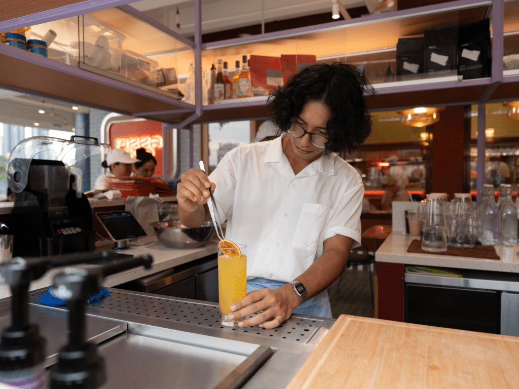 Step just outside the main dining room and you’ll find Caffè Duo, the flagship’s outdoor espresso bar. In Italy, barista quite literally means bartender, and Caffè Duo leans into that versatility. Classic espresso shares the menu with Soda Cremosas and Sips, the café’s signature non-alcoholic creations, designed to evoke the kind of easy afternoon spontaneity that makes Italian summers feel like their own season.